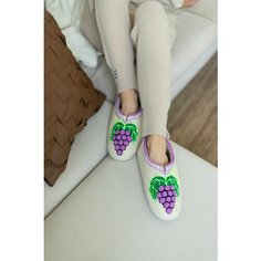 Туфли домашние из овечьей шерсти - тапочки с закрытым носом. Легкие, теплые, но не жаркие, дышащие. Снаружи - текстиль, внутри - мех трикотажный с ворсом из овечьей шерсти. Подошва жёсткая, из эвапласта, толщиной 6,5 мм, темного цвета. В пределах одного...