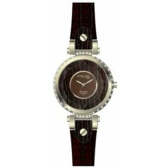 Женские стильные часы на кожаном ремешке украшены стразами. Дополнения в виде камней данной модели украсят Ваш образ своим сверкающим блеском.