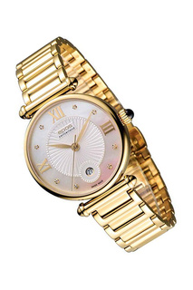 Кварц.й мех-м Ronda 788 с вынес. датой и фазами луны; Корпус из нерж. стали; Gold PVD;Размер 31 мм; Сапфир. антибл. стекло; Перлам. циферблат; Браслет из нерж. стали; Закруч. завод. головка; Закруч. задняя крышка корпуса; Расклад. застежка; WR ...