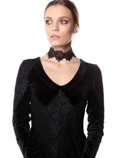 Чокер декорировали объемной аппликацией в виде цветочного кружевного бутона, дополненного деталями из гладкого атласа и граненых бусин в тон. Широкая лента застегивается велкро сзади. Состав: Шелк; Полиэстер; Пластик; Стекло; Хлопок;