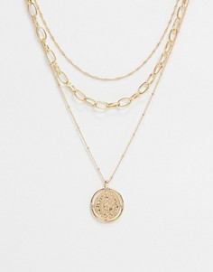 Ожерелье Reclaimed Vintage Завершающий штрих для вашего образа Дизайн в несколько рядов Комбинированные цепочки Подвеска-монета Регулируемая цепочка Застежка-лобстер Эксклюзивно для ASOS