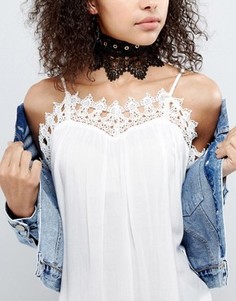 Ожерелье-чокер ASOS Collection, Кружевная ткань, Отверстия с люверсами, Отделка бахромой, Регулируемая цепочка, Застежка-карабин, 90% ткань, 10% металл, Длина цепочки: 30,5 см + цепочка-удлинитель 7,5 см. Станьте королевой стиля вне зависимости от дресс...