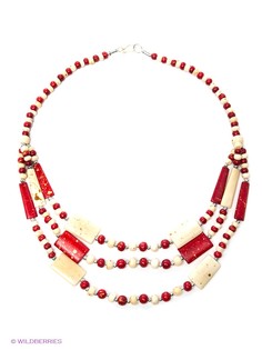 Ожерелье. Цвет: молочный, красный. Сезон: лето. Состав: металл, кость