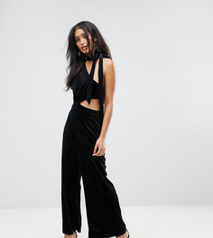 Комбинезон Lioness, Мягкий бархат, Чокер-завязка, Асимметричный крой на одно плечо, Вырез на боку, Широкие штанины, Свободный крой, Машинная стирка, 100% полиэстер, Размер на модели: UK 8/EU 36/US 4, рост модели: 174 см, Эксклюзивно для ASOS. Сочетая лю...