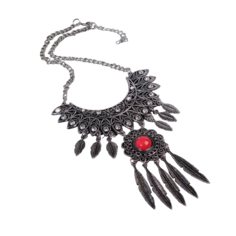 однотонный рисунок, перья, застежки-крючки, содержит нетекстильные части животного происхождения, колье с подвеской
