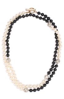 Регулируемое по длине колье изготовлено мастерами марки, основанной Оскаром де ла Рентой, из позолоченной латуни. Аксессуар из ажурных цветочных элементов, инкрустированных дымчатыми круглыми и прямоугольными кристаллами Swarovski, дополнен бусинами чер...