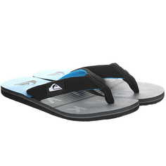 Эластичный стреп из синтетического каучука с классической перемычкой между большим и вторым пальцами ноги. Текстовый логотип Quiksilver и классический литой логотип Mountain&Wave. Рифленая нескользящая стелька. Боковины в цветную полоску. Подошва из дут...
