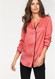 Сатиновая блузка. Воплощение изысканности: сатиновая блузка от модного бренда Bruno Banani. Безупречная модель с небольшим V-образным вырезом отличается множеством интересных деталей: небольшой воротник-стойка дополняется защипами на плечах спереди и сз...