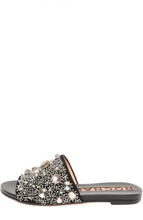 Шлепанцы Cosmic на тонкой подошве с отделкой из серебристой гладкой кожи будут почти незаметны на ноге, выдавая себя лишь сиянием фигурных кристаллов. Чтобы создать эффект цветочного узора, закрепленного прямо на обнаженной коже, Джанвито Росси выбрал д...