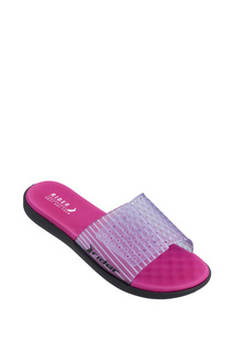 Полупрозрачные резиновые шлепанцы Saionara органично завершат пляжный образ. Принадлежность пары марке обозначили рельефным изображением крыльев на Y-образной перемычке и эмблемой на стельке. Состав: Подошва-полимер: 100%; Резина: 100%;