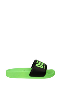 Шлепанцы с логотипом от Diesel (Дизель). Закругленный носок, плоская резиновая подошва и Т-образный ремешок.