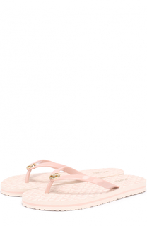 Шлепанцы актуального в сезоне весна-лето 2018 года цвета чайной розы изготовлены из мягкой упругой резины. Майкл Корс украсил Т-образный ремешок небольшим бантом с металлической золотистой перемычкой. Такой декор придает модели легкий романтический флер...