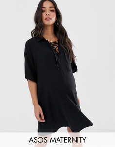 Платье для беременных ASOS DESIGN Набросьте и вперед Ворот на шнуровке Свободный крой Подходит для любого срока беременности