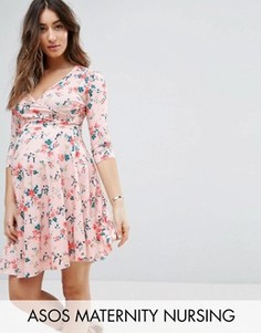 Maternity dress by ASOS Maternity, Эластичный трикотаж, Цветочный рисунок, V-образный вырез, Запах для удобства при кормлении, Классический крой, точное соответствие размеру, Подходит для любого срока беременности и после родов, Машинная стирка, 96% пол...