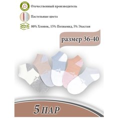 Рады предложить Вашему вниманию прекрасный комплект коротких женских носков, высокого качества и изготовленных из хлопка на 80%, полиамид 15%, эластан 5%. Комплект из 5 пар выбирается рандомно. Вы не пожалеете, что заказали у нас данный комплект. Наши н...