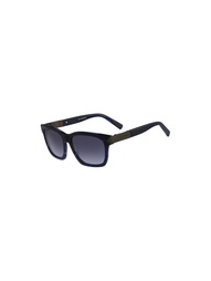 Синие солнцезащитные очки Retro Piping от Karl Lagerfeld. Градиентные линзы, квадратная оправа, прямые дужки с изогнутыми концами, тисненый логотип. Прилагается защитный чехол.