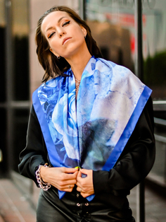 Платок от известного итальянского бренда VENERA выполнен из качественного шелка в синем цвете. Мягкая и приятная текстура ткани. Изделие имеет интересный растительный принт и роскошный орнамент. Большой размер платка позволит создать множество вариаций ...