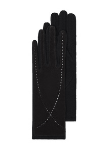 Лаконичные перчатки из мягкого материала декорированы кожаной вставкой с фактурными элементами спереди. Приятны на ощупь и хорошо согревают в прохладные дни.