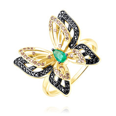 Оригинальное, изящное кольцо от бренда SOKOLOV из красного золота 585 пробы с натуральными изумрудами и эмалью - это лучший готовый подарок для взрослых женщин и девушек - подростков! Блестящее украшение необычной формы станет символом вечной любви и ук...