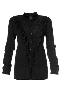 креп, логотип, рюши, леопардовый рисунок, длинные рукава, манжеты на пуговицах, воротник-бант, без карманов