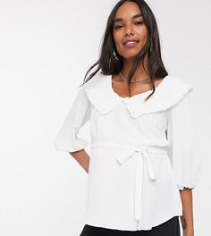 Топ ASOS DESIGN Вероятность попасть в корзину покупок: высокая Глубокий вырез Воротник с рюшами Пояс Классический крой Подойдет вам как во время беременности, так и после