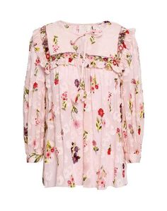Розовая шелковая блузка с рюшами и цветочным принтом от Giambattista Valli.