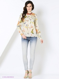 Блузка с длинными рукавами и округлым вырезом. Изделие выполнено из мягкого текстиля и оформлено декоративными прорезями.
