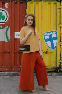 Блуза насыщенного апельсинового оттенка может стать ключевым акцентом в образе, но наши стилисты предлагают включить яркость на максимум, сочетая модель из круизной коллекции 2022 года с брюками такого же цвета. Мастера марки, основанной Валентино Гарав...