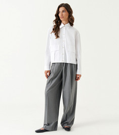 Стильная белая, хлопковая блузка, перестанет быть скучной, благодаря деталям отделки, которые дизайнеры подобрали наилучшим образом. Блузка полуприлегающего силуэта, с застежкой на петли пуговицы контрастного черного цвета, на деталях переда верхний кар...