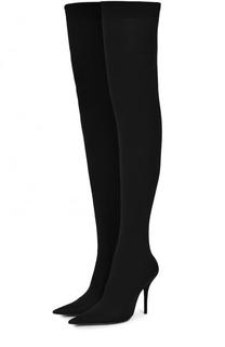 Черные кожаные ботфорты 'Knife 80' от Balenciaga. Модель до бедра.