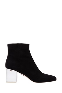 Черные замшевые ботильоны на каблуке высотой 65 мм и жемчужной пряжкой сбоку от Miu Miu. Состав: Кожа/Замша