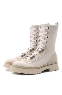 Нежный кремовый оттенок и деликатное мерцание цепочек мониль уравновешивают армейский маскулинный силуэт этих ботинок. Для пошива пары с высокой шнуровкой использовали комбинацию бархатистой замши и прочной парусины из хлопка и льна. Чувство устойчивост...