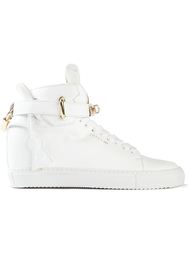 Кеды с декоративным замком от Buscemi. Шнуровка спереди, верхняя застежка с поворачивающимся замком, петля для подтягивания сзади, висячий замок и плоская резиновая подошва. Цвет: белый.
