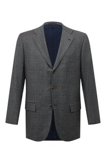 Для пошива однобортного пиджака в крупную виндзорскую клетку использовали легкий нежный кашемир из пуха монгольских коз с добавлением ультратонкой ценной шерсти гуанако, из которой ежегодно производят очень ограниченное количество вещей. Ее волокна, сод...