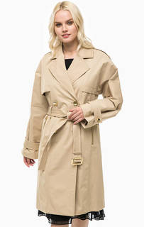 Бежевый двубортный тренч из хлопкового микса с поясом от Michael Michael Kors(Майкл Майкл Корс).