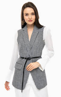 Жилет MICHAEL Michael Kors - происхождение бренда: США - производство: Китай - материал: 100% лен, подкладка - 97% полиэстер, 3% эластан - особенности модели: два кармана, жилет застегивается на пуговицы и фиксируется ремнем на талии - цвет: черный/белы...