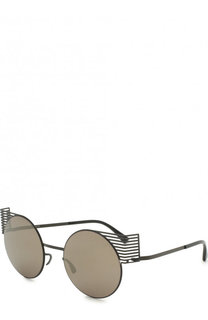 Солнцезащитные очки в круглой оправе от Mykita. Затемненные линзы и прямые дужки с остро изогнутыми концами. Модель в стиле унисекс.