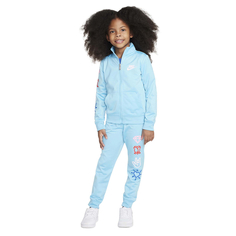 Комфорт и творческое настроение в одном костюме. Детский комплект Nike Swoosh Tricot Set выполнен из мягкого синтетического трикотажа и дополнен яркими, жизнерадостными принтами. В комплект входят олимпийка и брюки со слегка зауженным силуэтом. Эластичн...