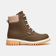 Детские ботинки фасона ASPEN-D из новой зимней коллекции выполнены в тёплом оливковом цвете. Дизайн отличается необычной шнуровкой и молнией и дополняется контрастной подошвой с нескользящим протектором. Натуральная кожа и мех подарят комфорт и тепло в ...
