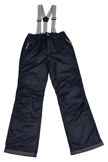 Изделие выполнено из плащевой ткани, на подкладке, с утеплителем, застежка на молнию и кнопки, два кармана, пояс на резинке, съемные подтяжки, светоотражающие планки