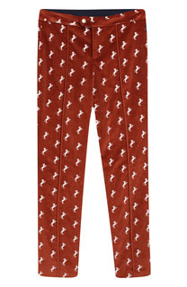 Брюки кирпичного оттенка произведены из приятного на ощупь смесового материала на основе хлопка и вискозы, поэтому изделие мягкое, не электризуется и хорошо пропускает воздух. Широкий пояс не сдавливает кожу благодаря эластичной вставке сзади. По бокам ...