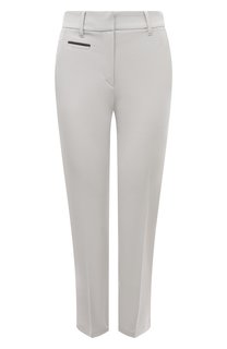Укороченные прямые брюки светло-бежевого оттенка станут комфортным вариантом для прогулок в прохладную погоду. Для создания модели с эластичным поясом-кулиской, двумя карманами и широкими отворотами мастера марки, основанной Брунелло Кучинелли, использо...