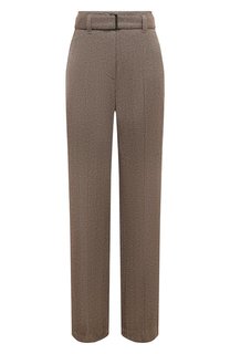 Брюки Corset Loose со стрелками и четырьмя карманами сшили из эластичной шерсти с шевронным узором. Регулируемый ремень из такой же ткани продели в шлевки, одну из которых украсили цепочкой мониль. Состав: Шерсть: 87%; Полиамид: 12%; Эластан (Полиурета...