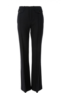 Синие расклешенные брюки из шерстяного микса от Chloé(Хлое). Пояс с петлями для ремня, средняя посадка, потайная застежка спереди, завышенный передний шов, передние карманы с клапанами, удлиненная модель, задние карманы с листочкой.