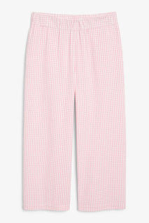 Прямые брюки из эластичной трикотажной ткани в рубчик с эластичным поясом и широкими штанинами.Классический кройПрямые штанины Широкие штаниныТкань в рубчикДлина внутреннего шва для размера S — 64 см.