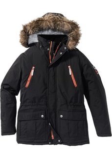 Согревающая парка с плотным капюшоном, оснащенным опушкой из искусственного меха. 2 нагрудных кармана. 2 втачных кармана внизу. Защита от ветра благодаря вязаным манжетам на рукавах. Застегивается на молнию и планку с липучками.