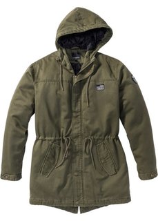 Стандартный покрой. Молния с 2 замочками. Множество практичных карманов (вкл. 2 внутренних кармана). Ширина в талии регулируется с помощью тесьмы. На утепленной подкладке. Водоотталкивающий материал. Длина ок. 80 см (разм. 50).