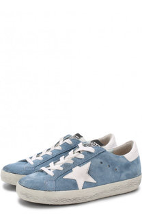 Мастера марки изготовили кеды из мягкой фактурной замши нежно-голубого оттенка. Язычок, вставка на заднике и аппликация в виде звезды выполнены из прочной белой кожи с матовым блеском. Широкая контрастная подошва с декоративными потертостями придает обу...