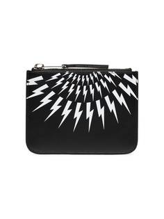 Кошелек Lightning Bolt от Neil Barrett. Застежка на молнии сверху и тисненый логотип спереди. Цвет: черный.