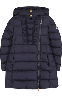 Пальто с косой молнией, с капюшоном.